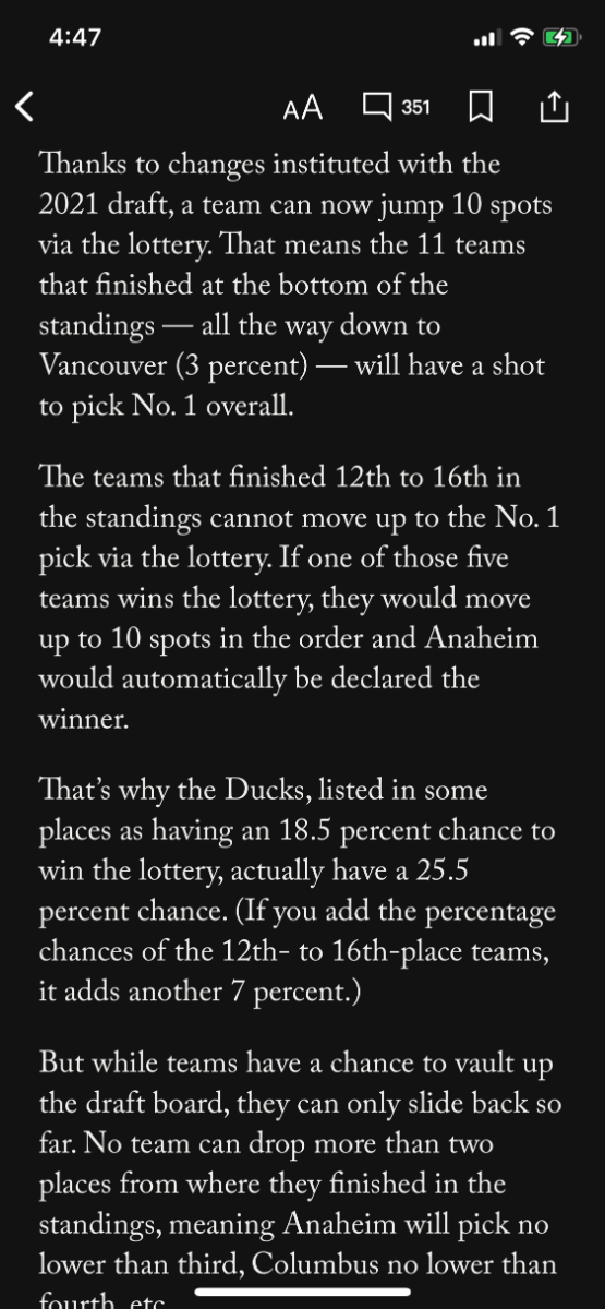 As I stated in the other topic, the odds to get the #1 pick are not the same as the odds of winning the lottery (though mostly for Anaheim)
