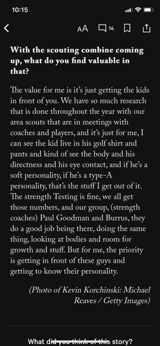 As for this draft, I'd be very interested in how far the second tier of players extends. The top 4/5 players are said to have separated themselves from the field, but I'm curious about the next group of players. Does that next tier last through 19? Or do the Hawks need to package some picks to move up into that tier? Time to start reading up on the mid-first round guys.