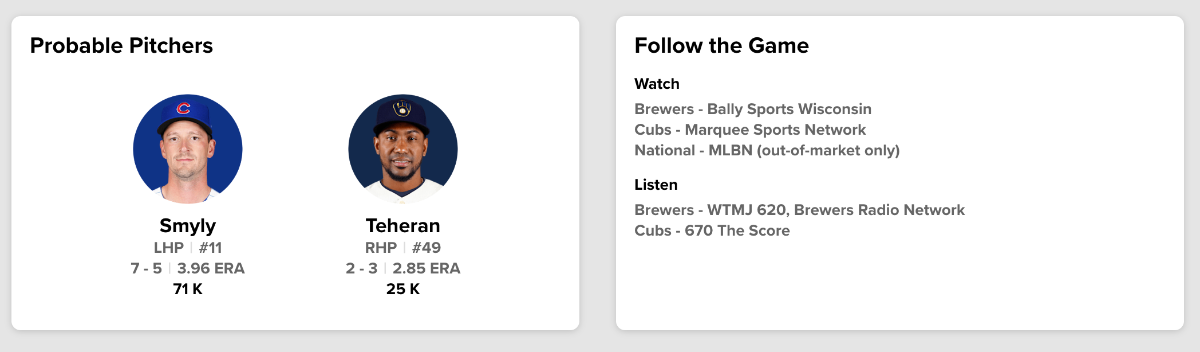 This is a four-game set in Milwaukee. The Cubs kinda need a split here, though expecting more than that may be asking too much.
