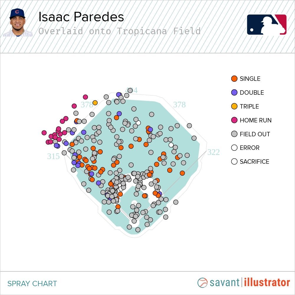 Not every ball will be so decisive, but the threat Paredes poses forces defenses to think about how to align themselves to take away those doubles down the line, too. This year, while he was in Tampa Bay, we've seen left fielders play him fairly close to the line, but shallow.