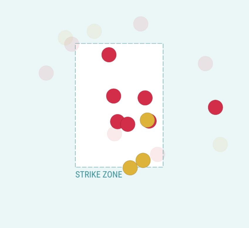 This are his total pitches thrown and his chase last night (pitches in the bold received swings) You'll, his o-zone pitches were generally "waste" pitches...no one is really going that far out of the zone to go get those. His sweeper sat in the zone a bit. His fastballs were mostly centercut.