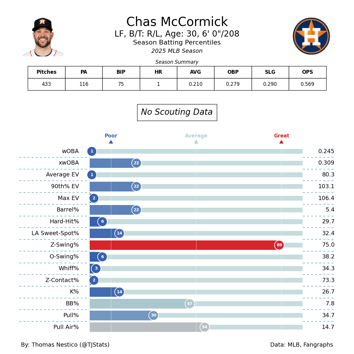 Chas McCormick (MLB): .210/.279/.290, 1 HR, 5 RBI