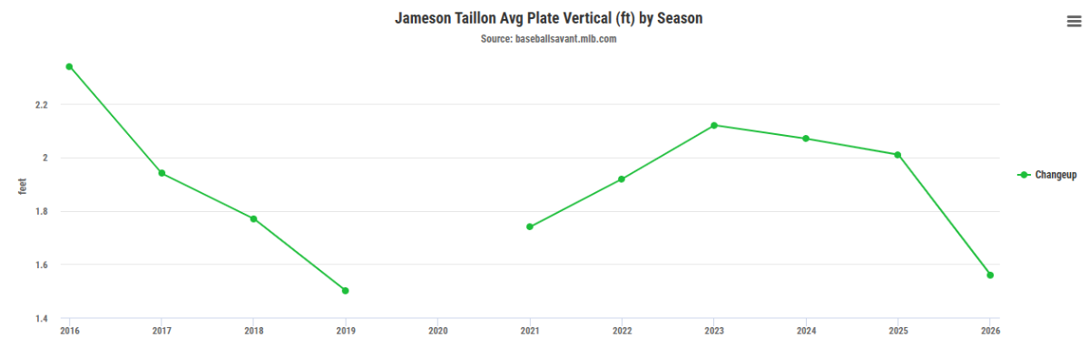 Getting that back to his 2025 standard would be a good proxy for additional velocity, if we're to assume he can't repair both at the same time. The book on Taillon has always been about limiting homers and finding a way to stifle lefties. He found the recipe to success down the stretch last year, and a return to to form would be a huge boon for a Cubs team currently ailing in the rotation.