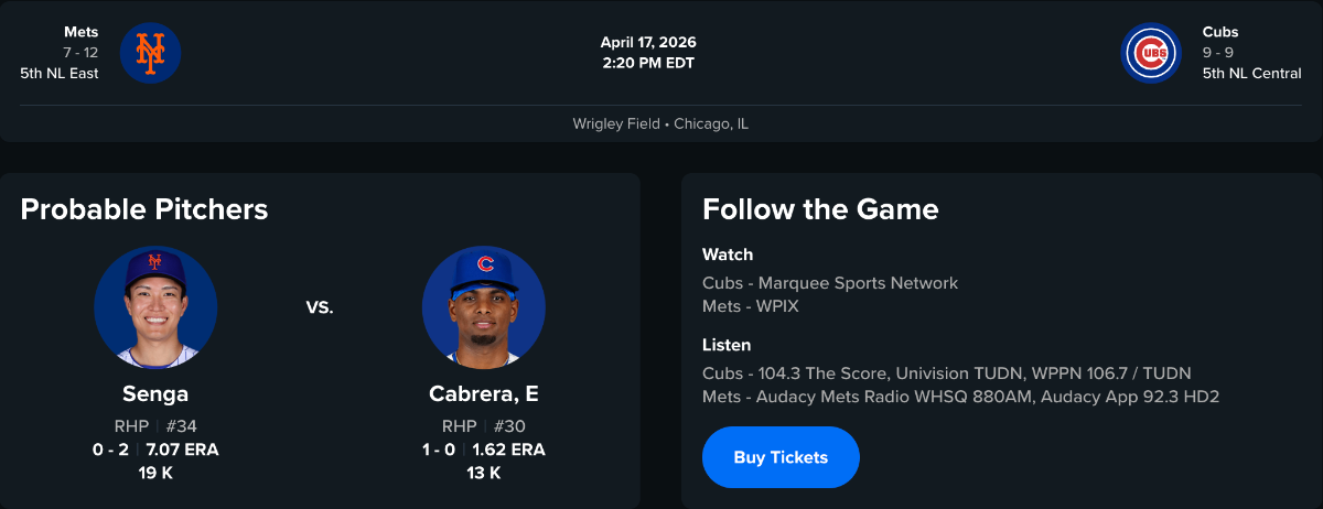 The Cubs' offense is alive and the Mets' offense looks dead. Gotta keep the momentum going now.