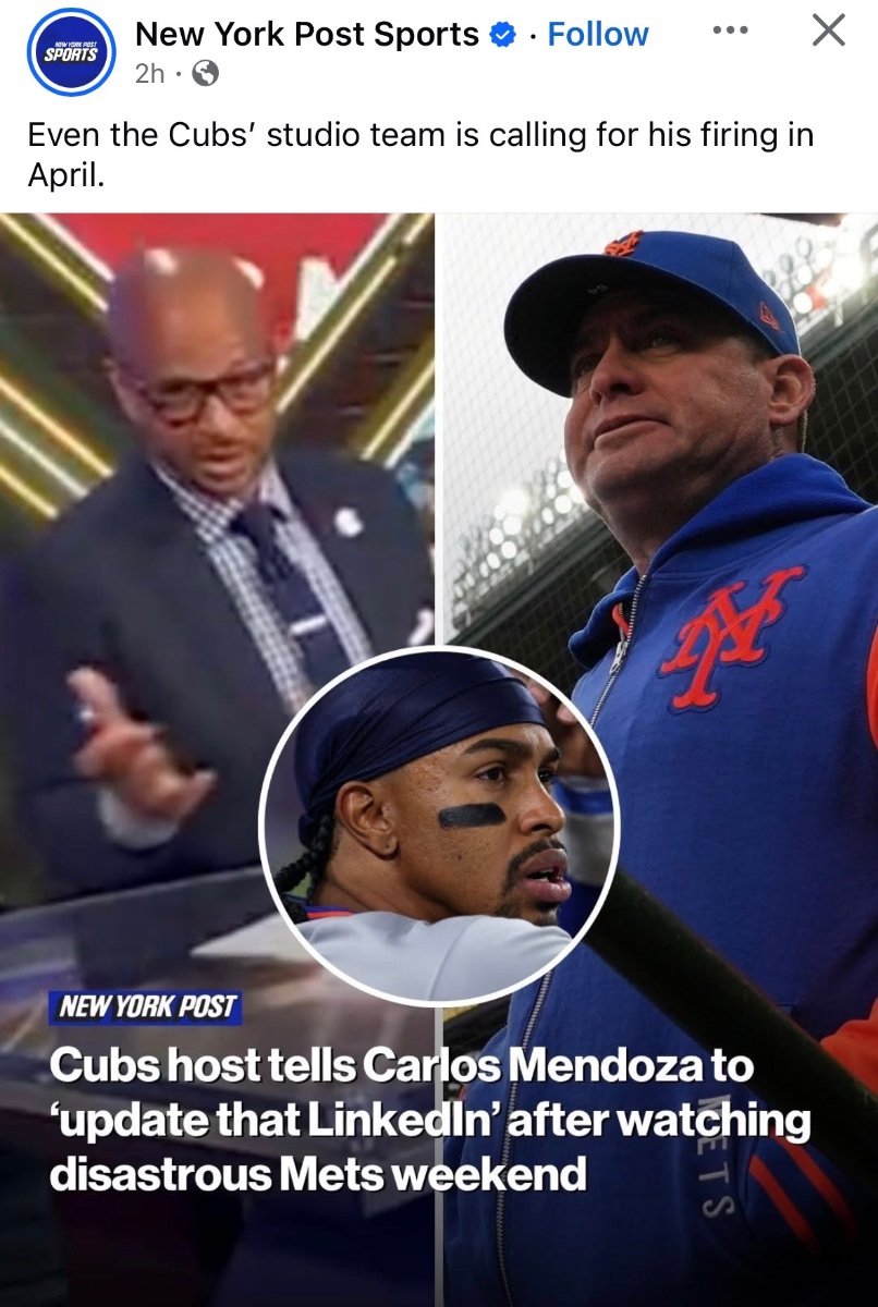 Unsure if this is the usual formatting on Marquee's youtube channel, but the posted postgame reaction video didn't have that "CareerBuilder"/LinkedIn comment on it.  Cole, Elise and Cliff spent most of that segment trying to make sense of what happened.  Cliff was being very nuanced in his commentary - not totally letting Mendoza off the hook, but also acknowledging that decisions can be easier in hindsight.  What was most notable to me is at around the 8:10 mark that Cliff finally put his hands up, "I'm not beatin' that dude up...we trying to celebrate the Dub over here, not beatin' this cat up...they gonna do that on SNY."