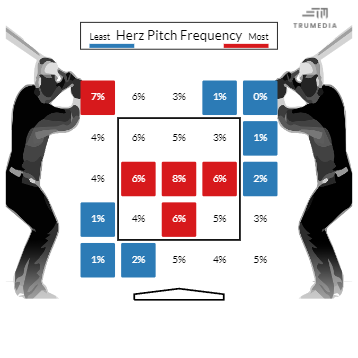 I think Herz is getting really, really lucky. He's throwing a lot of pitches belt high. And the most frequent zone of strikes is "middle-middle". Regardless of velo, MLB hitters hit mid-mid a ton. His mid-mid wOBA is under .300 but his xwOBA is in the ,330. League mid-mid is a wOBA over .400! 56% of his mid-mid pitches are fastballs. League mid-mid is 38%. Now, Maybe DJ Herz is capable of throwing his fastball mid-mid more than others by a lot and get away with it, but there's not much in his profile to suggest it. Savant has his fastball run value in the 63rd percentile - above average but not something you'd assume to see a .100+ point better-than-league-averageon-mid-mid pitches. Hitters in general have a ,338 wOBA against his fastball, league average on fastballs is .336 - there should be no reason he's so much better when tossing the pitch right down the shoot. The lowest swing% he has in in 0-0 counts and he's throwing more fastballs in that count than any other count that isn't 3-0 and 2-0. He's also below average on mid-mid swings. So what you have is a guy who's throwing a lot of mid-mid fastballs early in the count and hitters who are letting them go. He's getting ahead of hitters because of that. League wide numbers jump significantly if you get ahead 0-1 or your numbers dip significantly if you get behind 1-0. Even when hitters are swinging at his mid-mid stuff he's getting favorable results despite not having a fastball profile that would suggest that to be the case. Eventually, this is going to catch up to DJ Herz. Hitters are going to swing more often early in the count. They'll likely get used to a funky delivery and hit his fastball around league average (the way his total fastball wOBA mirrors league average) in mid-mid situations. When that happens he's going to regress. He'll either start to get tagged or be forced off piping fastballs early in the count which could cause him to go with a former pitch mix that was more conducive to the walk totals rising. Regardless, I don't think this is a pattern for long term success. He's not a dumpster fire of an MLB player, but I think he's going to eventually get found out. When that happens, I think he's going to have to find a new way to get guys out and based on his history of strike throwing, my confidence on that is...iffy at best.
